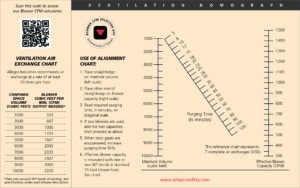 - Use a purge time chart provided on Allegro blowers (see below) to calculate purge times prior to entering a confined space. Each 90º bend in a section of an 8” duct will reduce flow by approximately 15%.