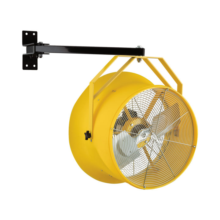 Our series of High Output Fans are versatile enough to withstand tough working conditions in industrial settings and warehouses; as well as offering a refreshing breeze in a variety of work settings. They are built for high velocity performance, superior distance of air throw, and durability. The heavy-duty, high-impact LLDPE housing is a vibrant yellow color and is ideal for indoor or outdoor use. Ships completely assembled and includes a powder-coated metal yoke bracket that easily mounts the fan to your desired location. Take advantage of its 360° turn radius and 130° tilt angle to push air where it’s needed. Available with optional metal swing arm or wall mount brackets.